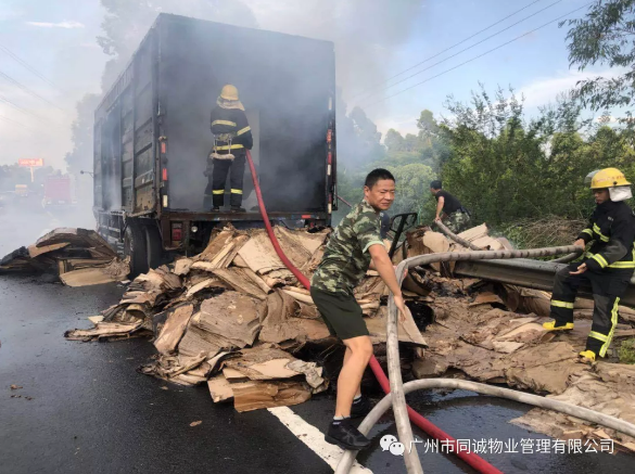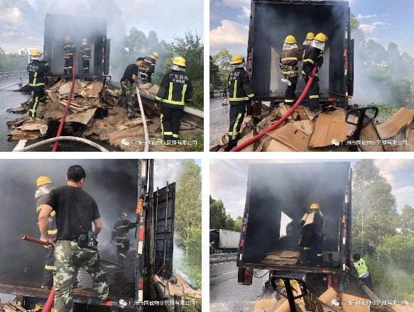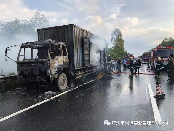 2018年7月27日下午17時(shí)05分,同誠(chéng)物業(yè)河源電廠專職消防隊(duì)接到119指揮中心命令:長(zhǎng)深高速石壩往埔前方向路段一輛載滿紙皮的貨車發(fā)生火情,請(qǐng)求我隊(duì)支援。接到報(bào)警后,項(xiàng)目專職消防隊(duì)第一時(shí)間組織人員趕赴事故現(xiàn)場(chǎng)。