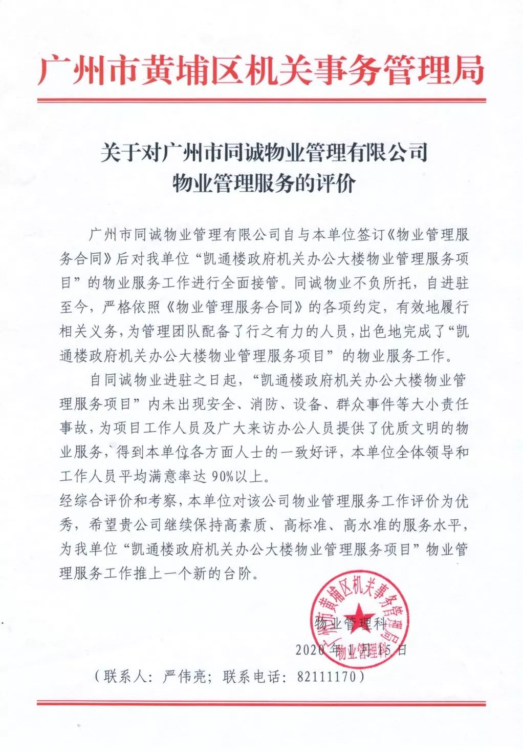 恪盡職守 精益求精︱廣州市同誠(chéng)物業(yè)管理有限公司服務(wù)工作得到多個(gè)業(yè)主單位肯定